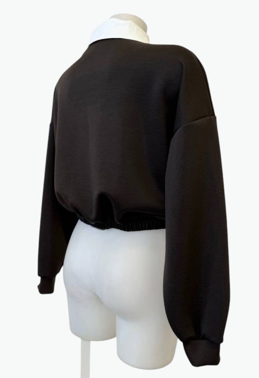 Esta sudadera con cuello camisero blanco y corbata incluida combina el estilo college aesthetic con un toque elegante que también puedes llevar en la oficina.