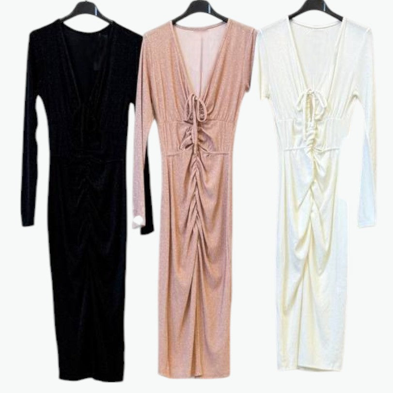 🖤 Vestido midi con escote cruzado en el pecho que realza el busto y define la silueta.