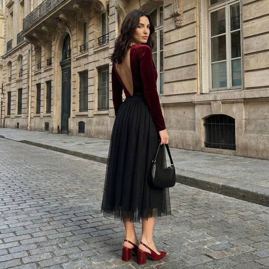 El tejido aterciopelado atrapa la luz, define la figura y aporta ese toque sofisticado que transforma un look normal en un outfit inolvidable.