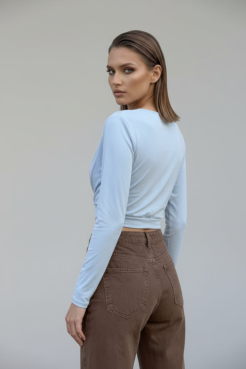 Confeccionado en un tejido suave y elástico, se adapta al cuerpo con comodidad, ofreciendo un ajuste favorecedor sin marcar. Su largo tipo crop lo convierte en una prenda ideal para combinar con pantalones o faldas de tiro alto, creando looks equilibrados y actuales.