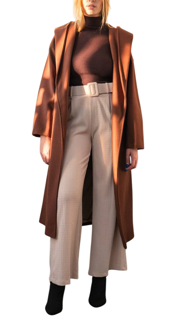 Elegancia, calidez y estilo en una sola prenda. Nuestro abrigo largo de paño con capucha envolvente y cinturón ajustable es el imprescindible del otoño-invierno. Su corte fluido y su tejido suave aportan confort y movimiento, mientras su diseño con capucha amplia le da un aire sofisticado y bohemio.