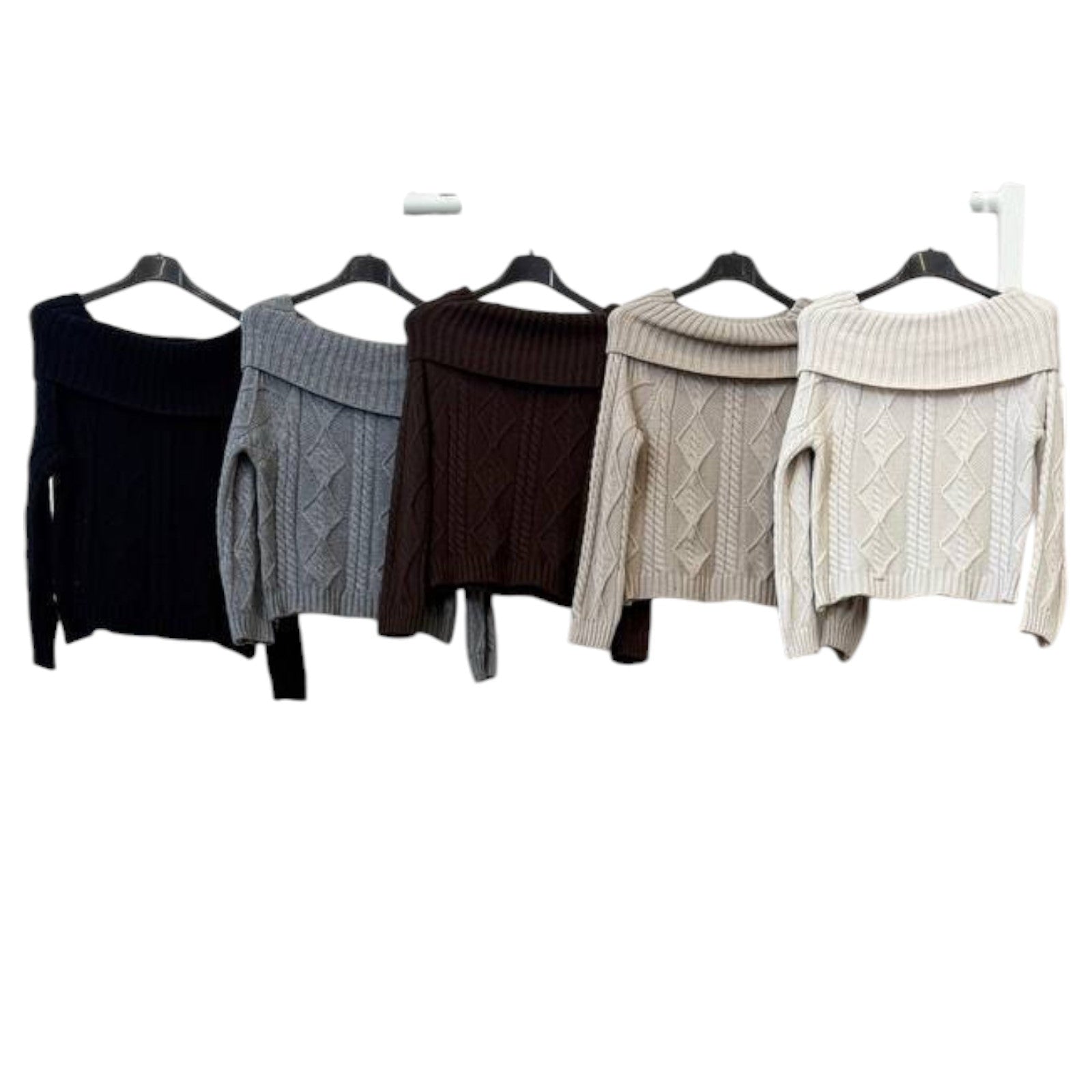 El jersey más favorecedor de la temporada. Su diseño off shoulder (hombros al aire) con textura trenzada crea un efecto elegante y femenino sin renunciar a la comodidad.