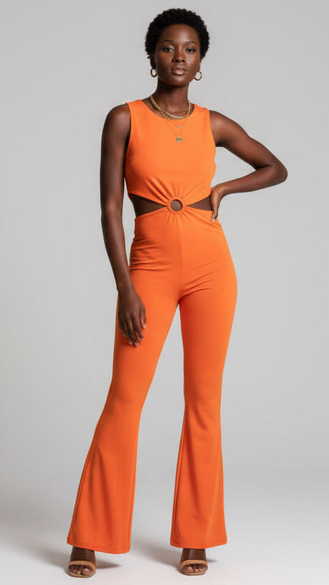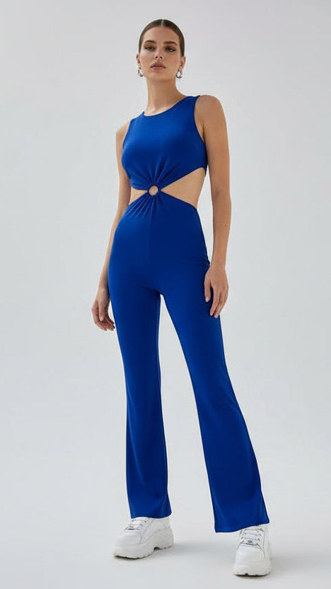 Este mono largo destaca por su diseño moderno y favorecedor. El corte sin mangas con abertura lateral y detalle de anilla en la cintura realza la silueta de forma natural, marcando la figura sin resultar incómodo. El pantalón largo con caída fluida estiliza y aporta movimiento al caminar.